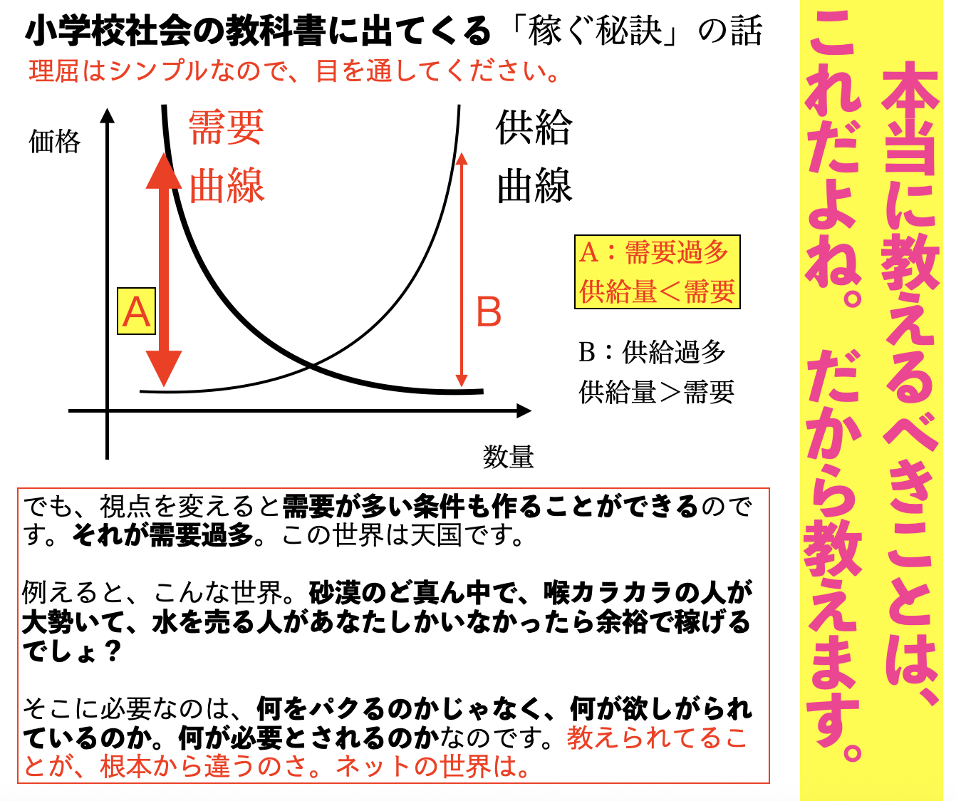 なぜ、需要過多の世界に意味があるのか。それは、実績がなくとも、知名度がなくとも、初心者だったとしても、そこに需要があるから売れちゃうからです。